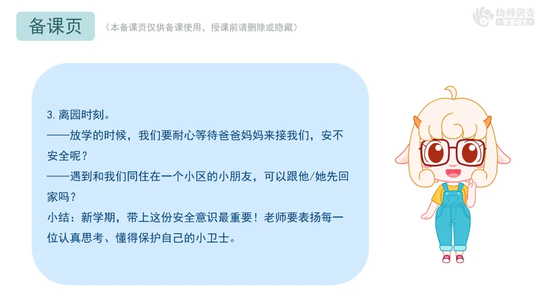 小结:新学期,带上这份安全意识最重要!老师要表扬每一位认真思考、懂得保护自己的小卫士。