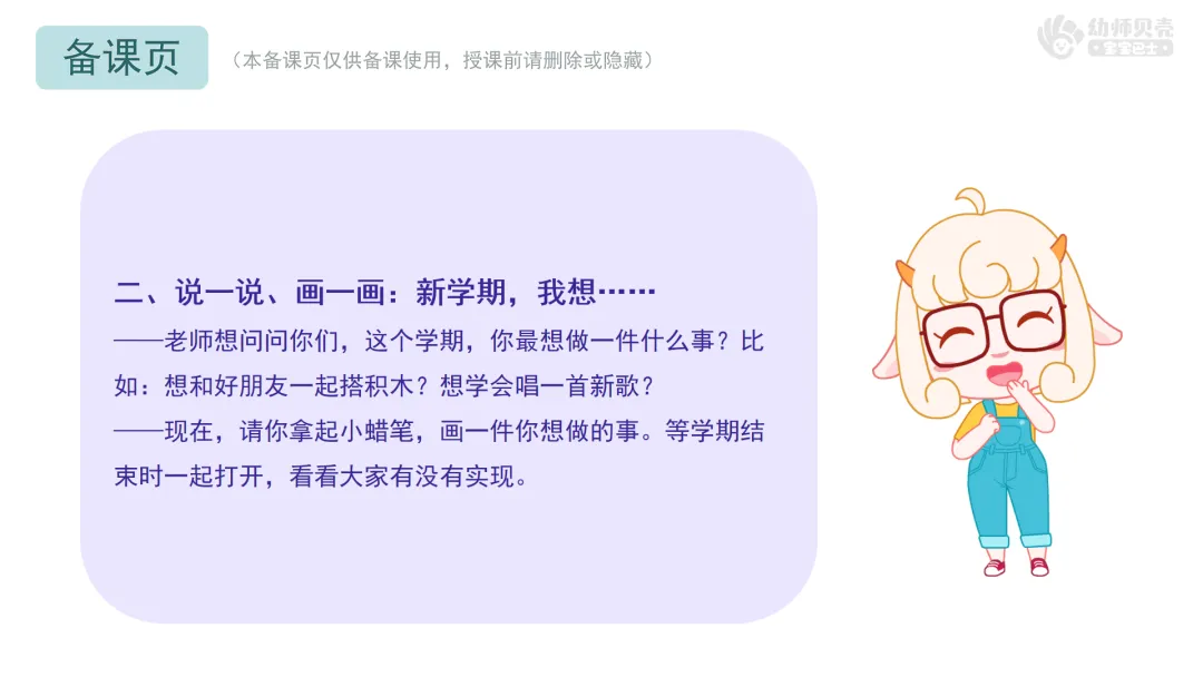 ——现在,请你拿起小蜡笔,画一件你想做的事。等学期结束时一起打开,看看大家有没有实现。