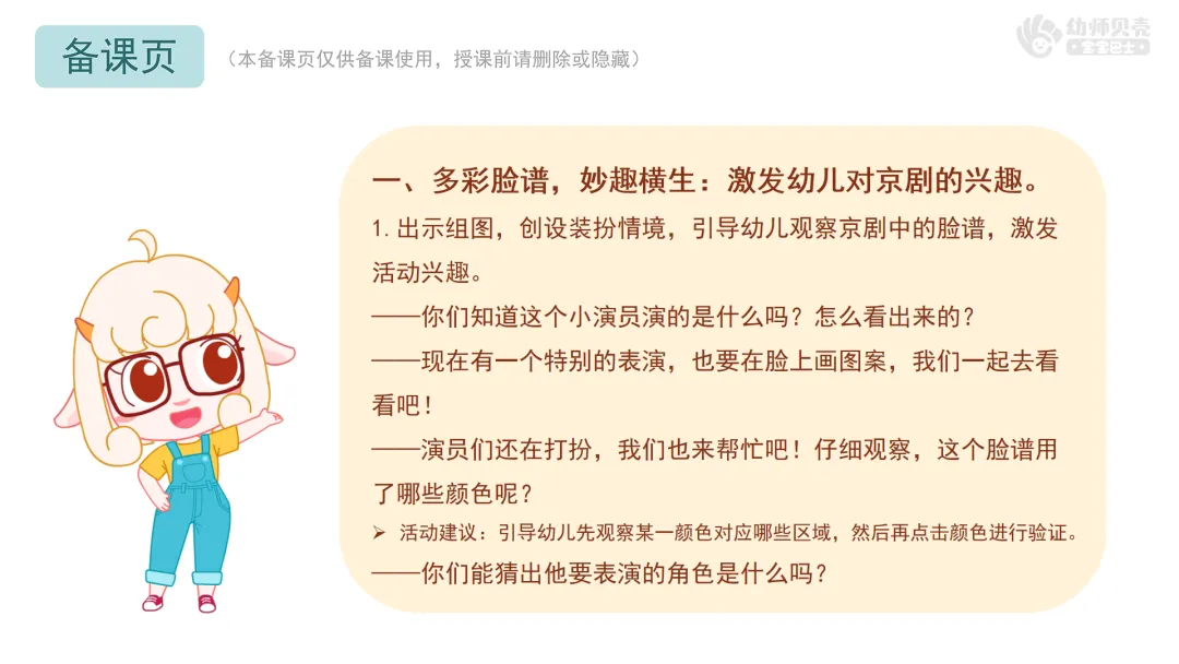 一、多彩脸谱,妙趣横生:激发幼儿对京剧的兴趣。