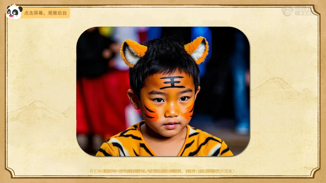 ——现在有一个特别的表演,也要在脸上画图案,我们一起去看看吧!