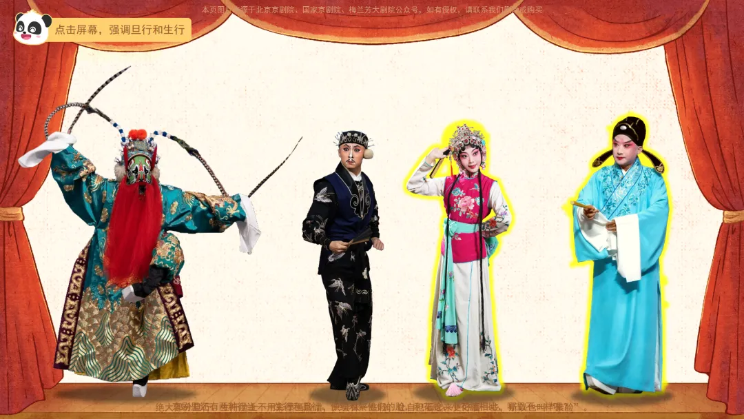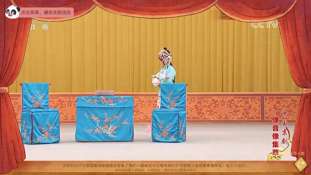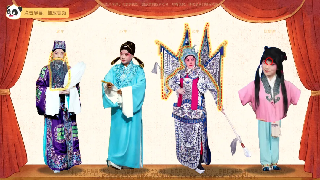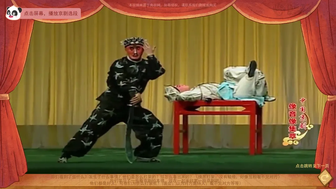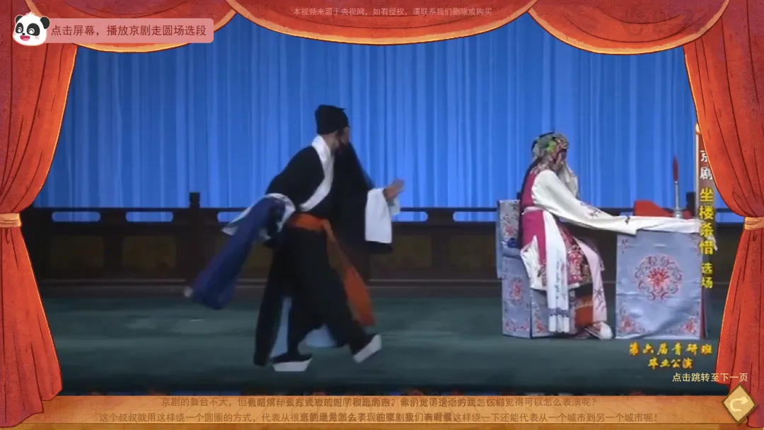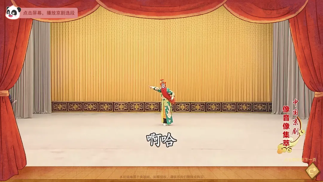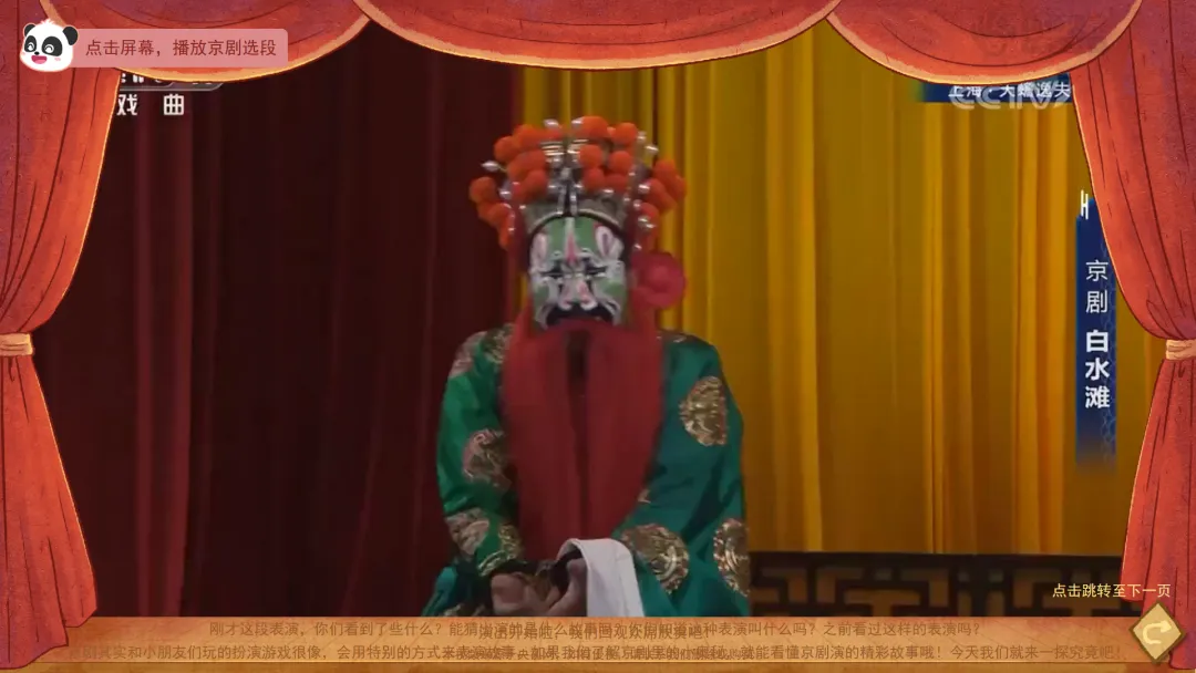 ——我们学习了一些看京剧的本领,现在一起来欣赏一段京剧吧!