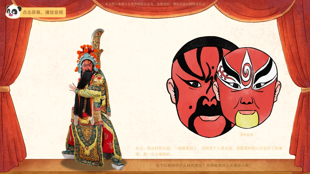 ——这个脸谱你们觉得算黑脸还是白脸呢?我们来听听看。(黑脸)