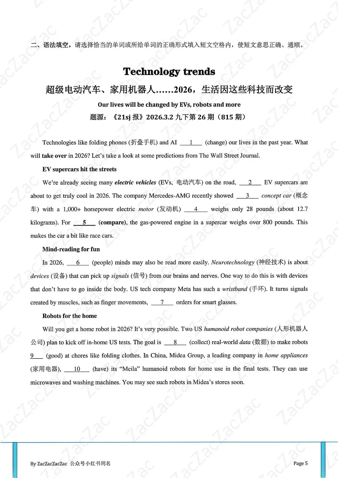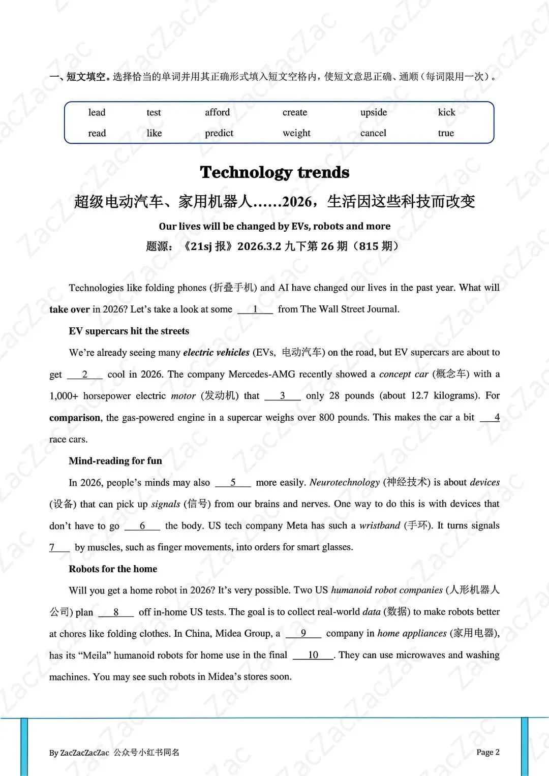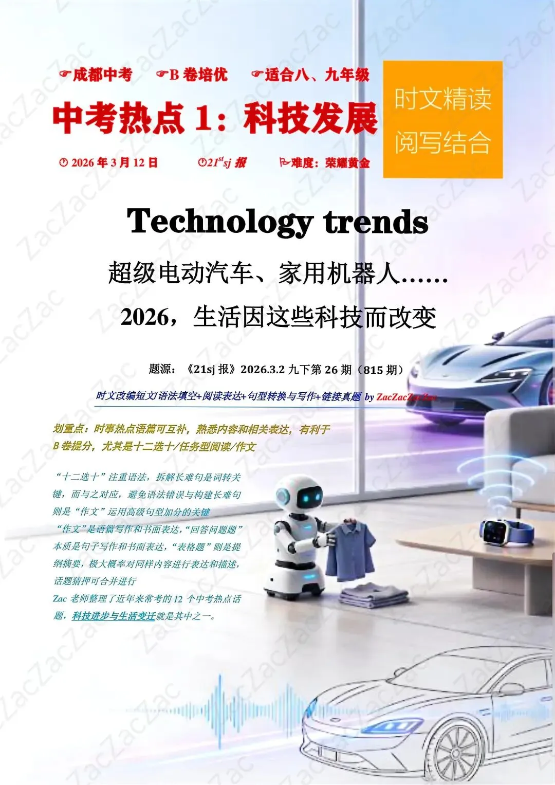 真的绝了!刚看到一份给初中生的英语时文资料,里面预测的2026年生活,直接把我的科幻瘾勾起来了!这根本不是枯燥的考题,是未来生活预告片吧?!🔥