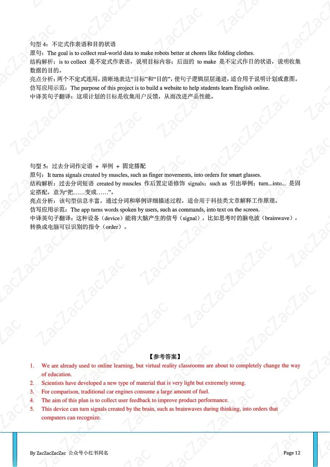 “神翻译”句子:资料里教了一个超实用句型——“be about to do”(即将…)。比如“虚拟现实课堂即将彻底改变教育方式”,瞬间让句子有了“未来感”,写作文用上就是高级!