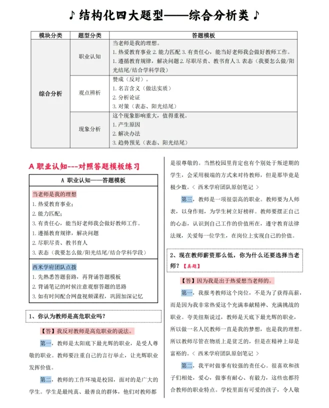 结构化笔记包含各类型结构化答题技巧模板+题库真题与答案解析+各类型结构化结尾金句+结构化高分金句。