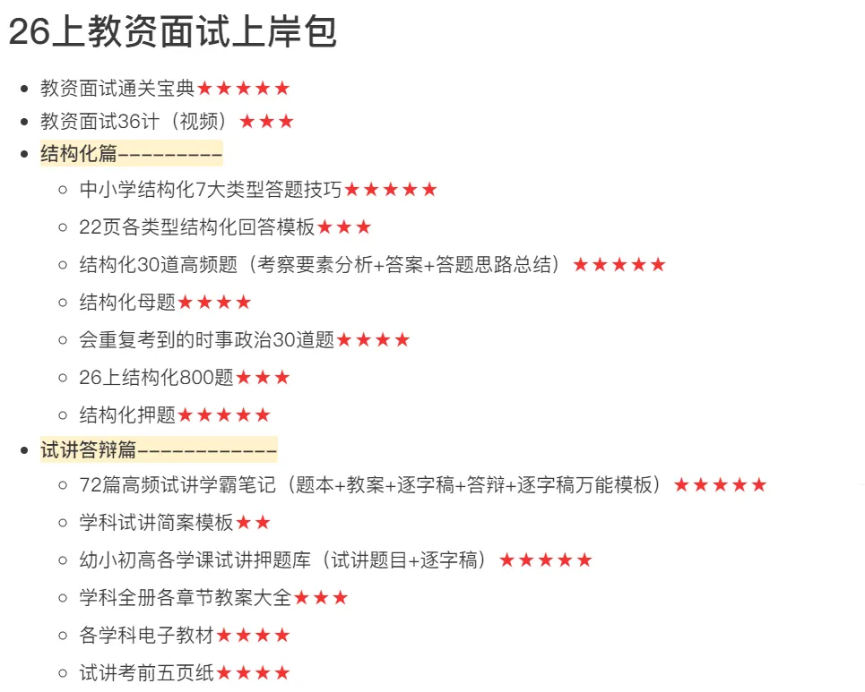 面试学霸笔记内容包含结构化+试讲+答辩三大模块。