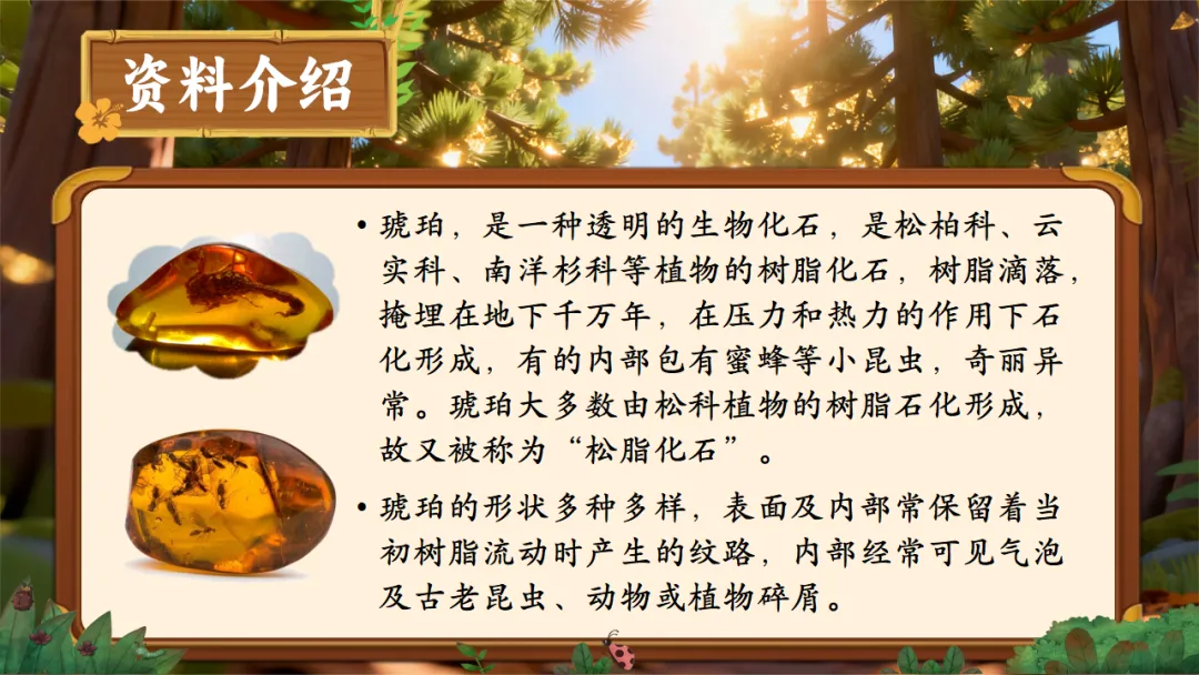 >四下《琥珀》AI赋能课件 |邂逅千万年时光印记,解码远古琥珀的生命奇迹(+AI视频+教学设计+逐字稿+分层作业)
