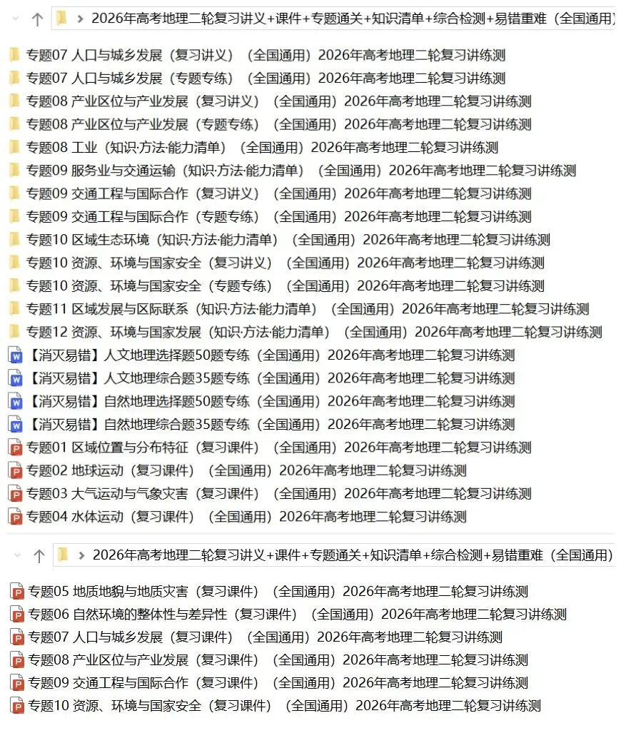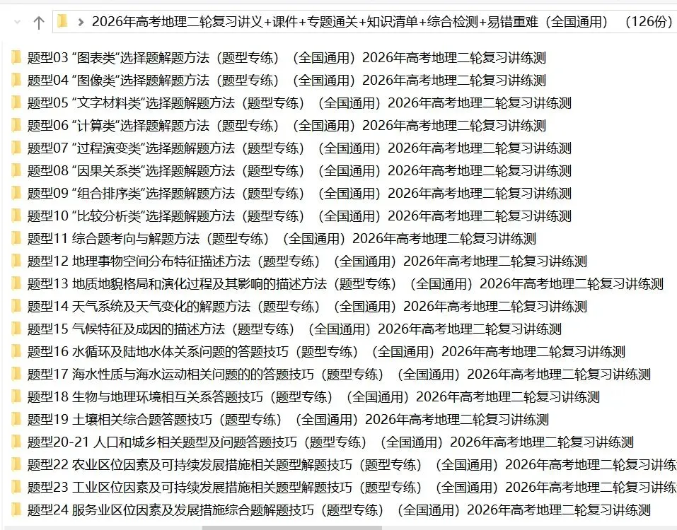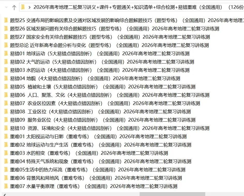 >【2026年高考地理】二轮复习讲义+课件+专题过关+综合检测+易错重难共126份全解全析(全国通用)全部完整电子版文档文末有下载方式