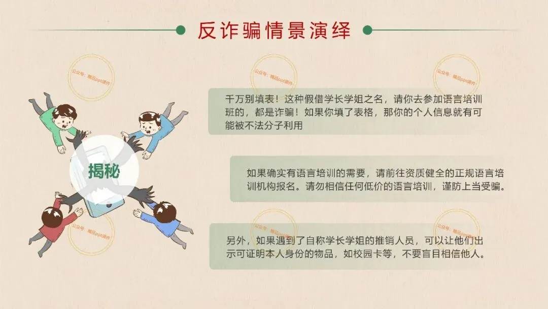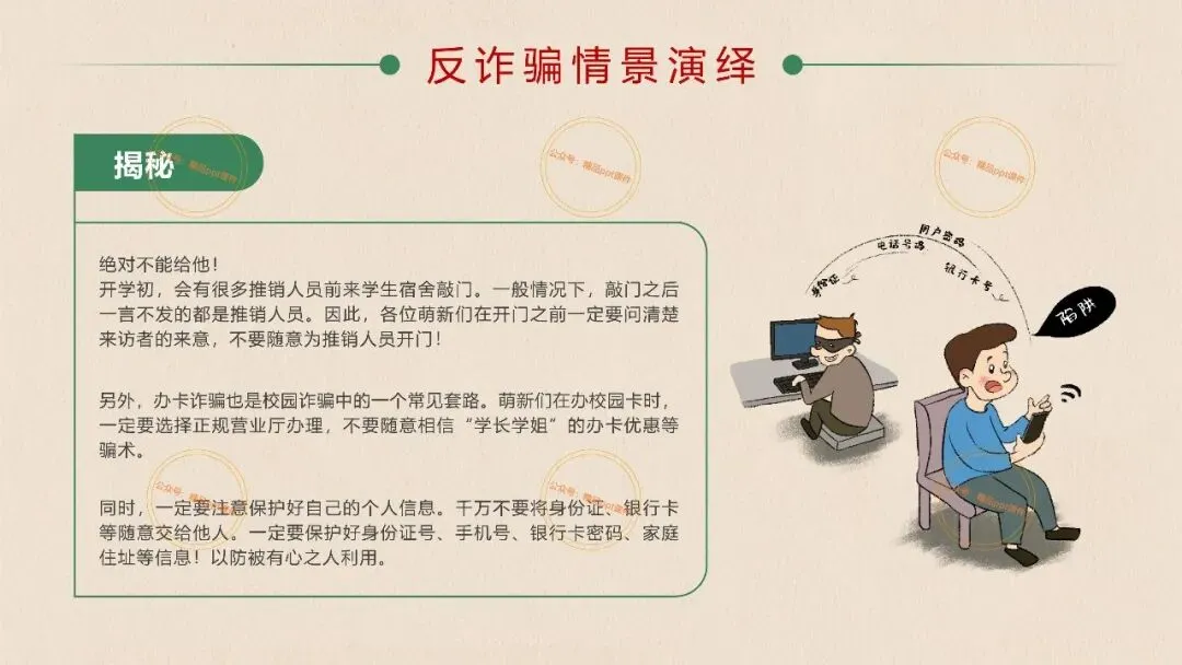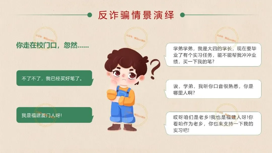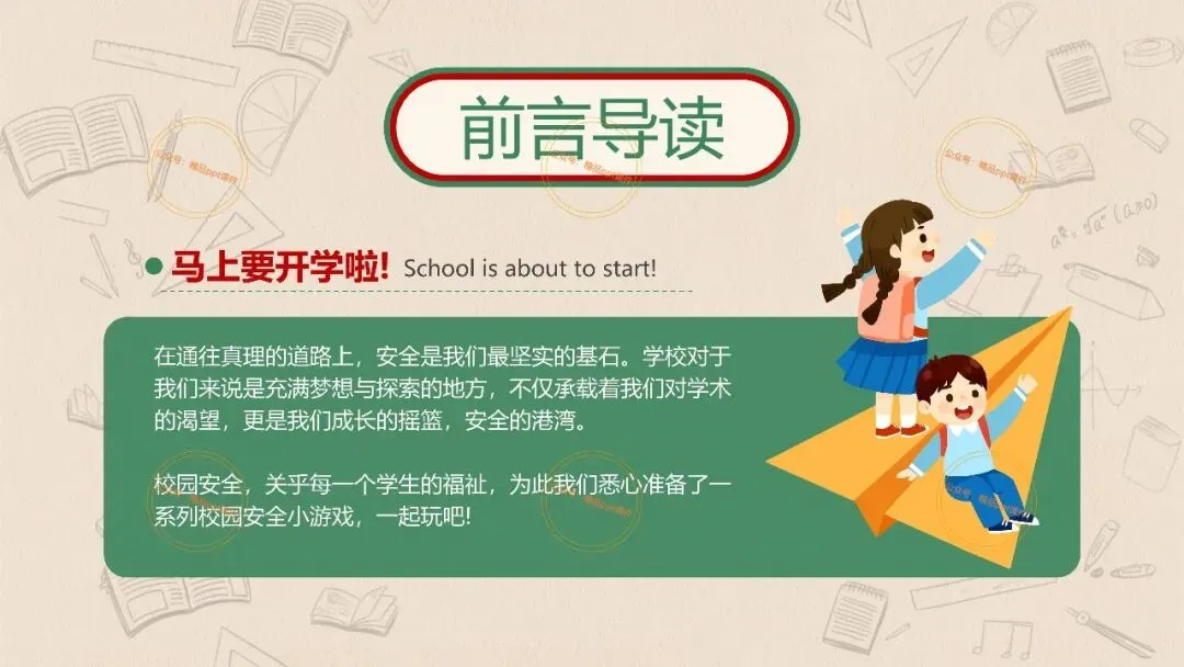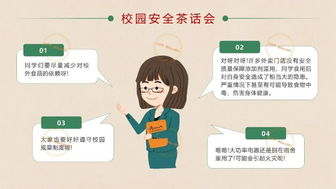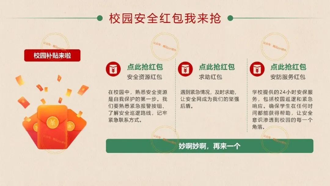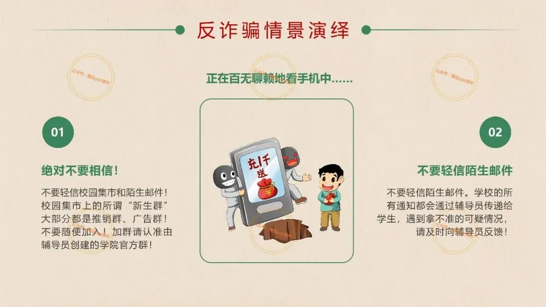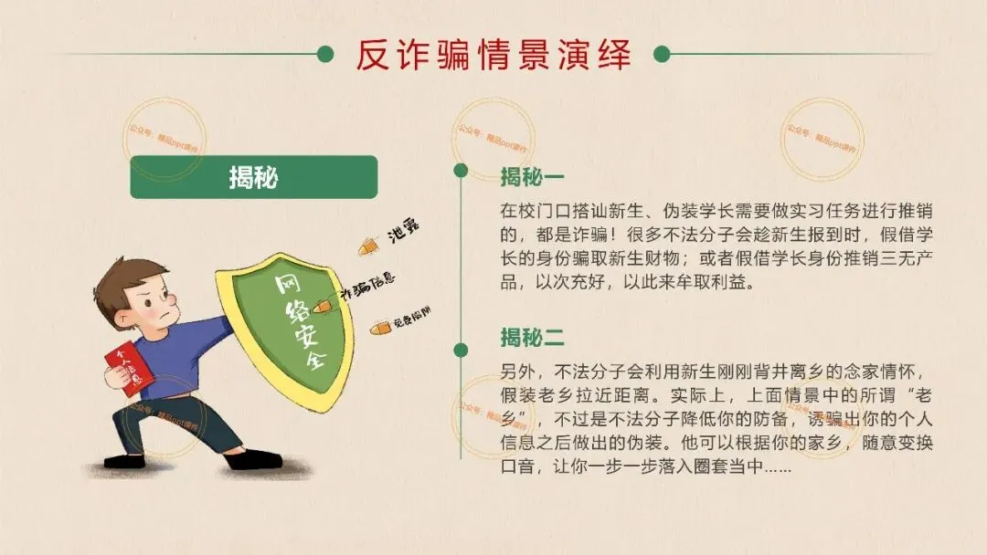 2、本公众号成立的初衷是为广大ppt使用者提升工作效率,所发布的课件资源仅供学习交流禁止用于商业用途,有偿所得用来维系公众号运营所支出的人工成本,性质为买家友情赞助后获取的信息差而非售卖资源的费用。同意此声明后即可下载本期大学开学第一课安全教育主题班会ppt。如有侵犯您的权利,请联系小沐老师。