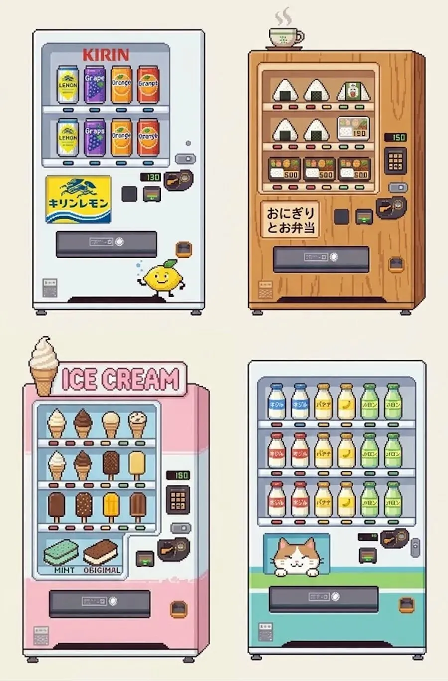 自动贩卖机就像一个会“自己工作的机器人商店”。它的前面有一个透明的大窗口,里面整整齐齐地摆放着各种商品。机器上有按钮、投币口或者扫码的地方,当你选好想要的东西,机器就会“咚”的一声,把商品送到下面的窗口里。自动贩卖机里常常会卖饮料、零食,有的还会卖冰淇淋、蛋糕、糖果,甚至还有鲜花、玩具和小礼物呢!