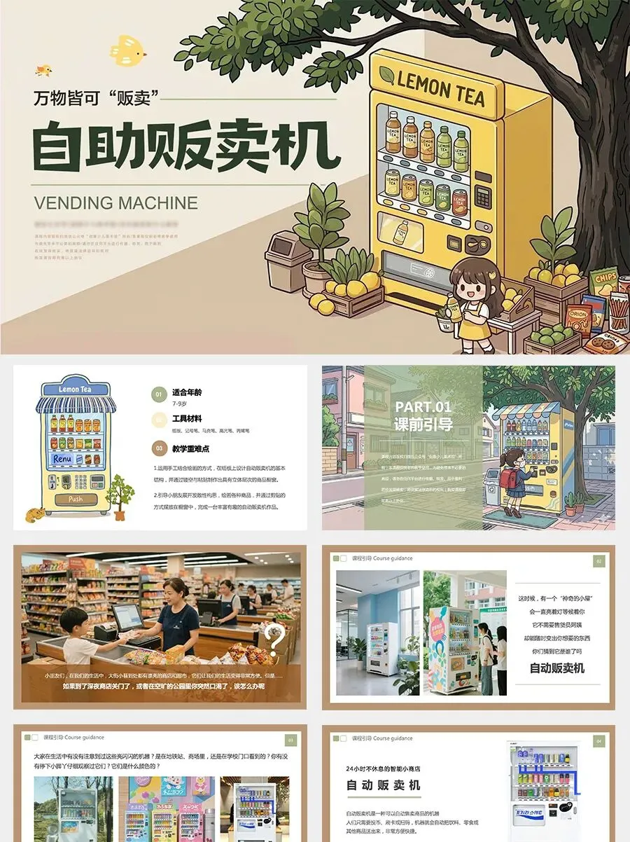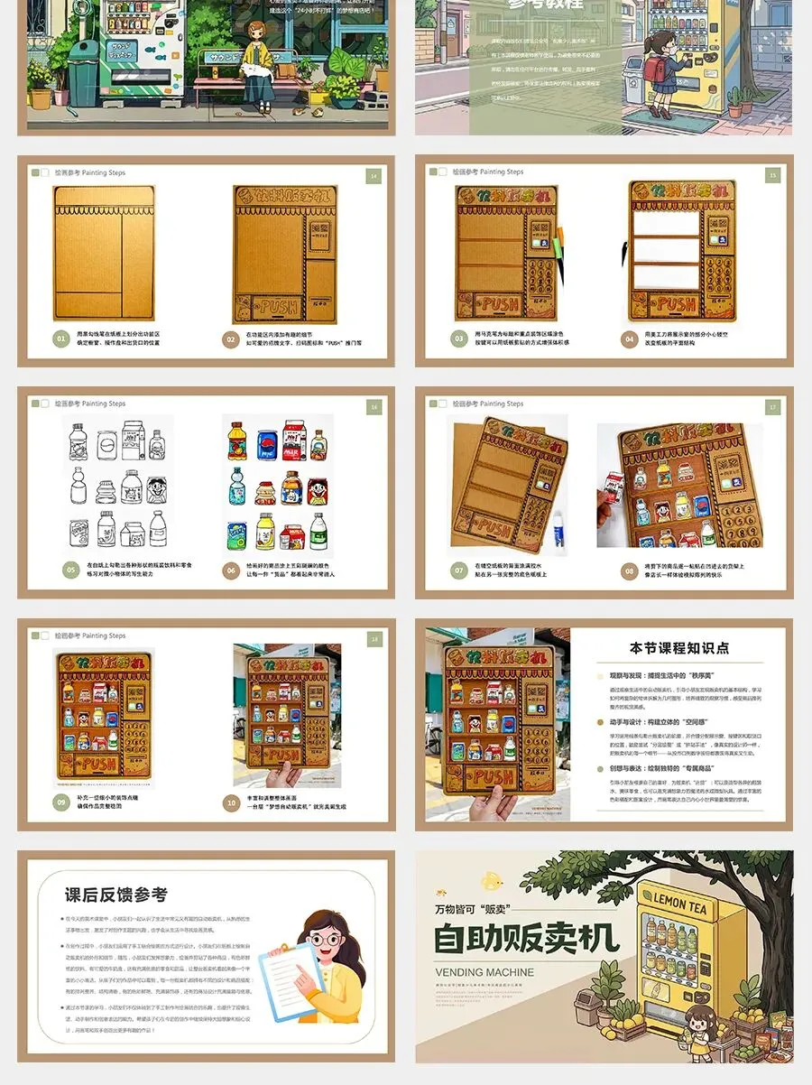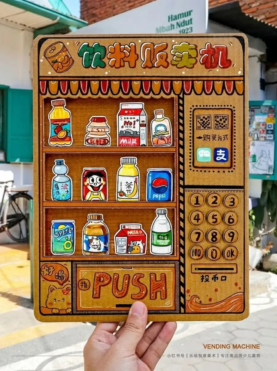 今天,在我们的美术课堂上,小朋友们也要变身成小小发明家和设计师,设计一台属于自己的自动贩卖机。你可以给它画上漂亮的外形,在窗口里摆满你喜欢的商品。让我们一起拿起画笔,创造一台世界上独一无二的自动贩卖机吧!
