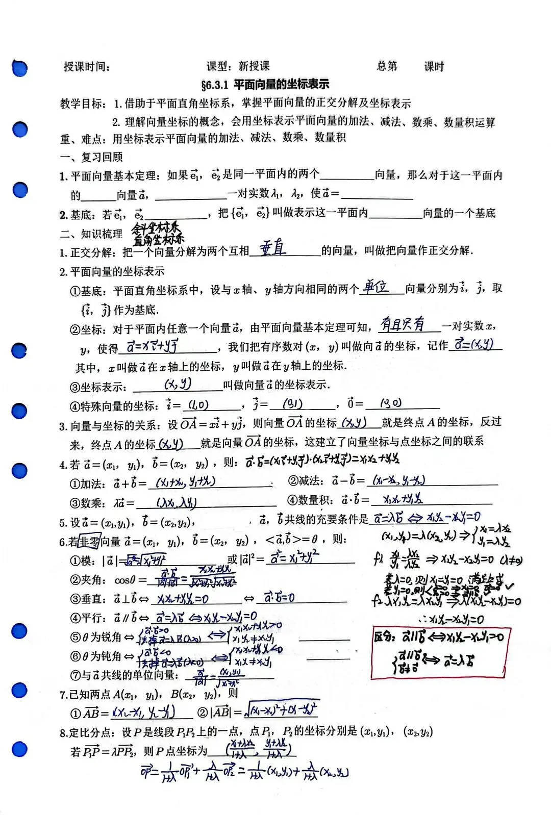 平面向量的坐标表示一教案