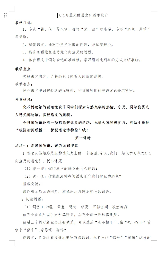 四下语文第二单元《飞向蓝天的恐龙》课件、教案