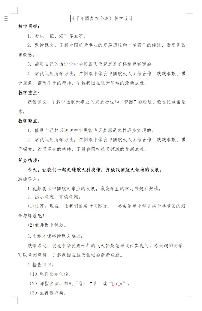 >四下语文第二单元《千年圆梦在今朝》课件、教案