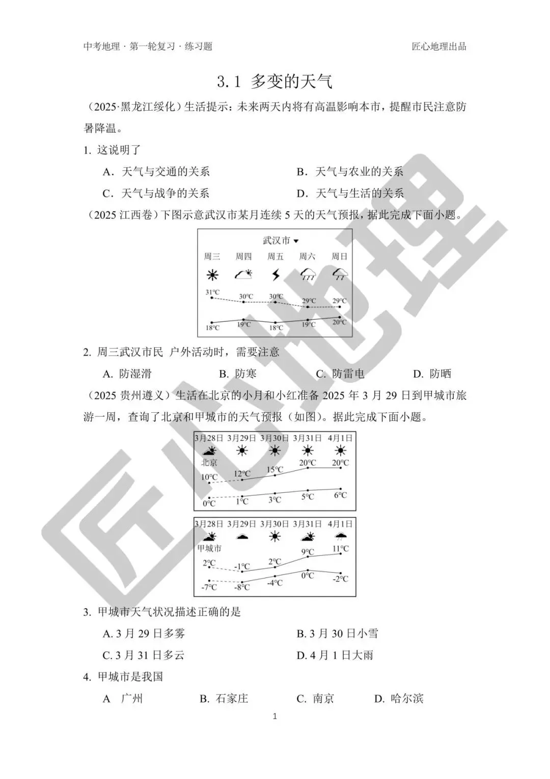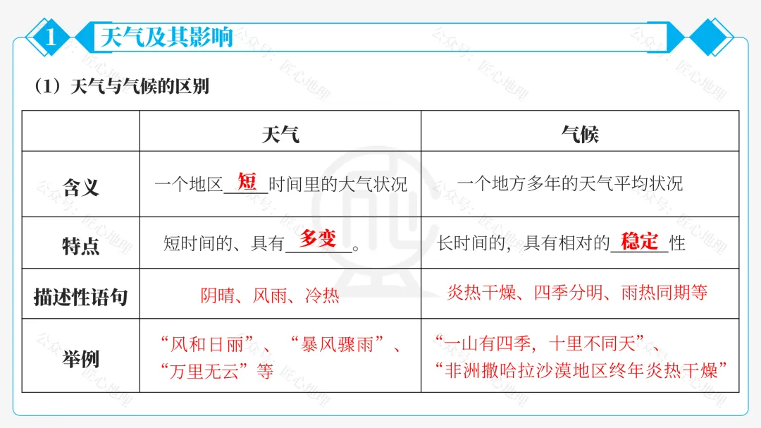 【章节】世界地理上:3.1多变的天气(课件+导学单+练习题)