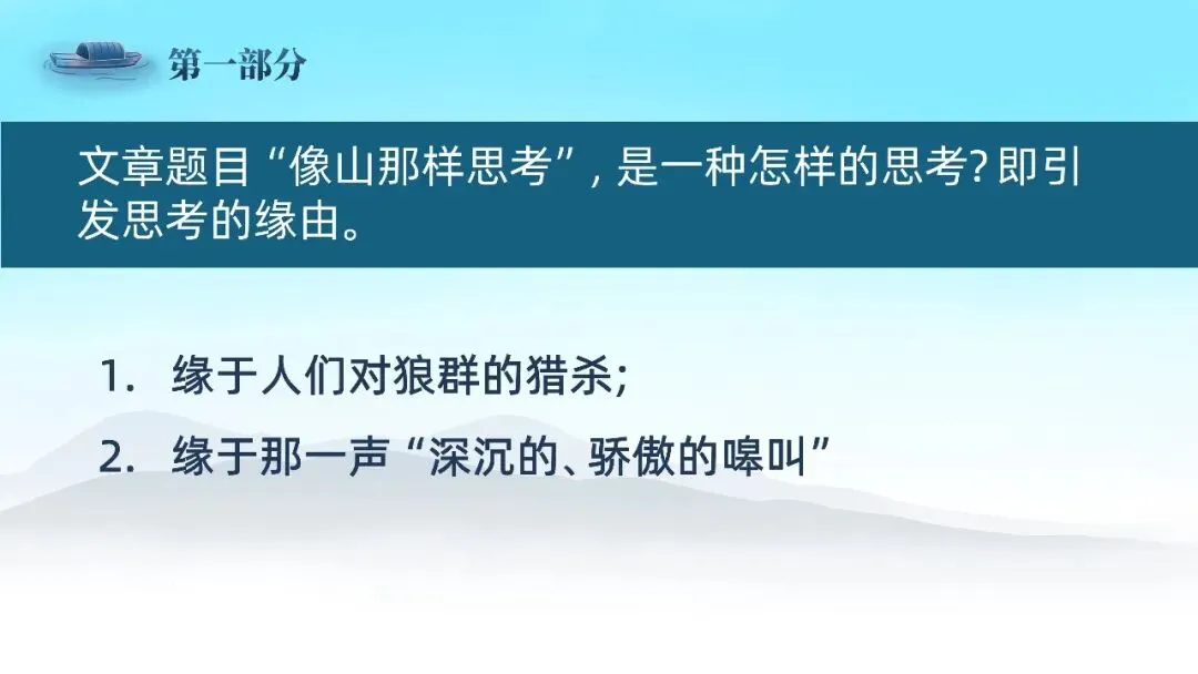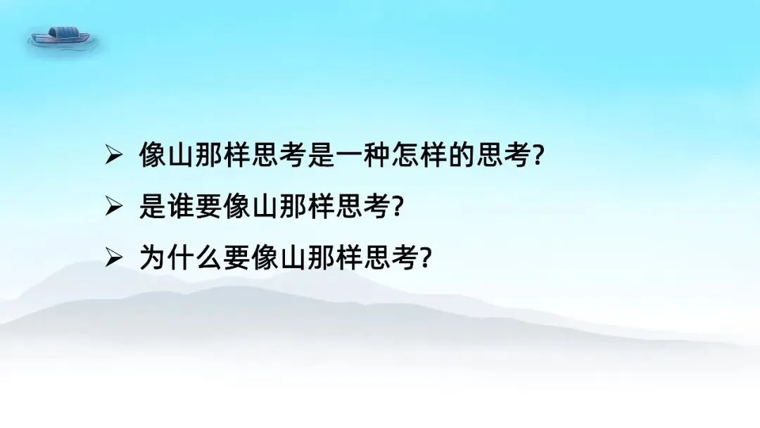 本期更新的课件为统编高教社版中职语文拓展模块上册第四单元《像山那样思考》,课件共24页。