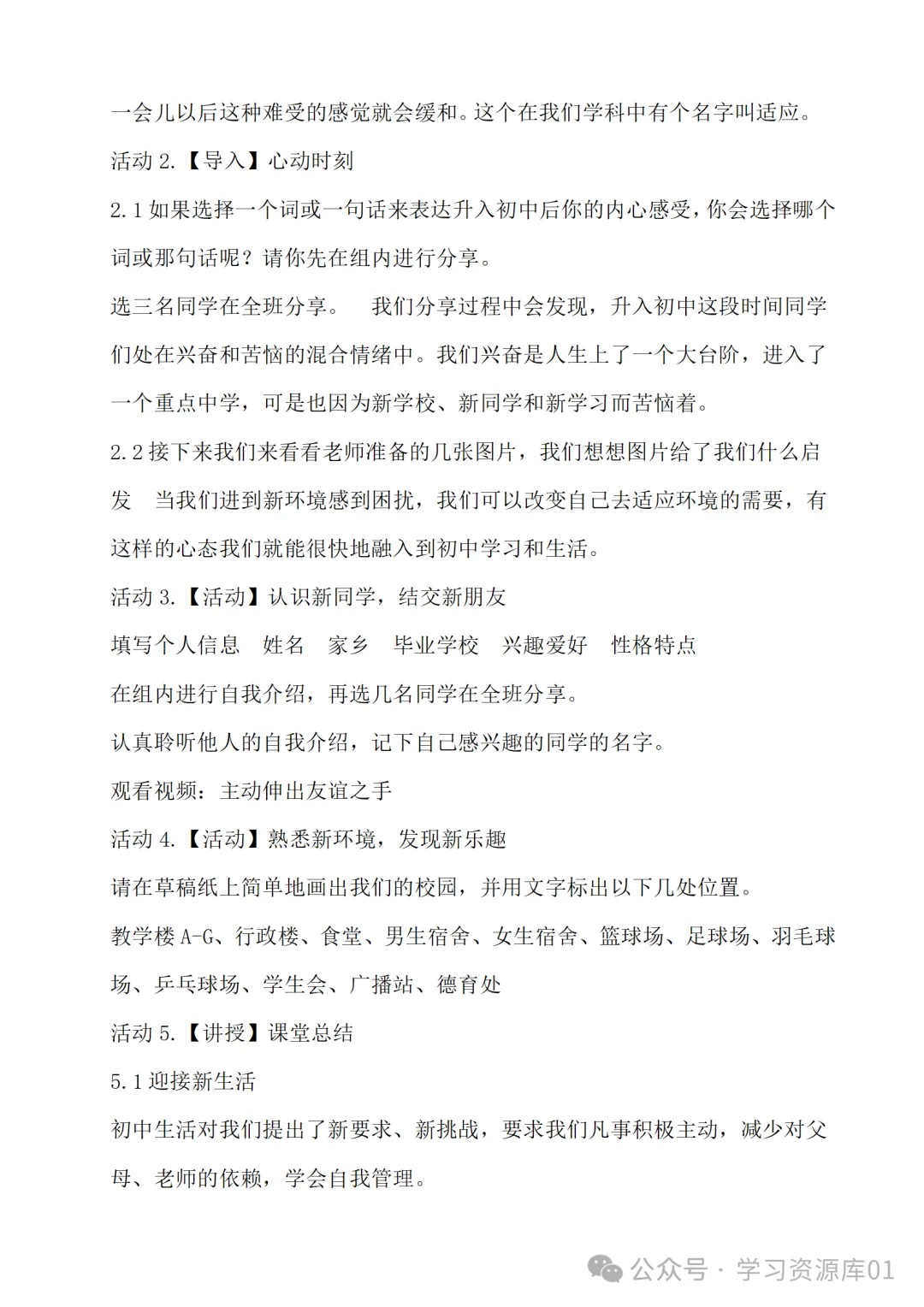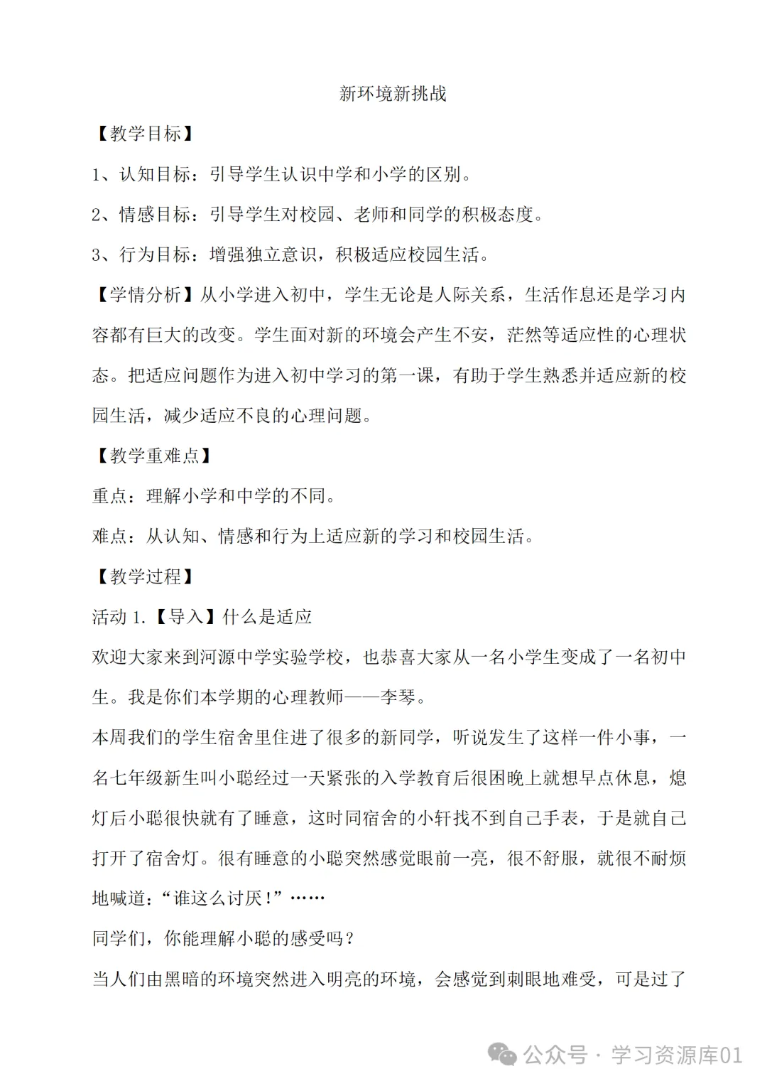 鄂教版初中心理健康七年级(教案+课件+音频视频),下载即用!