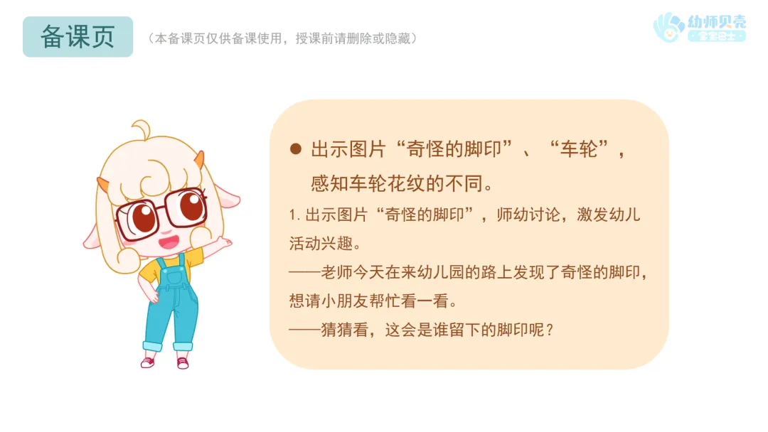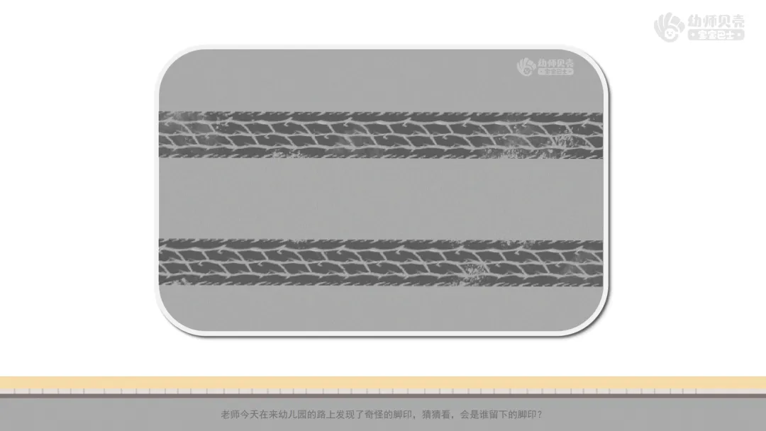 ——老师今天在来幼儿园的路上发现了奇怪的脚印,想请小朋友帮忙看一看。