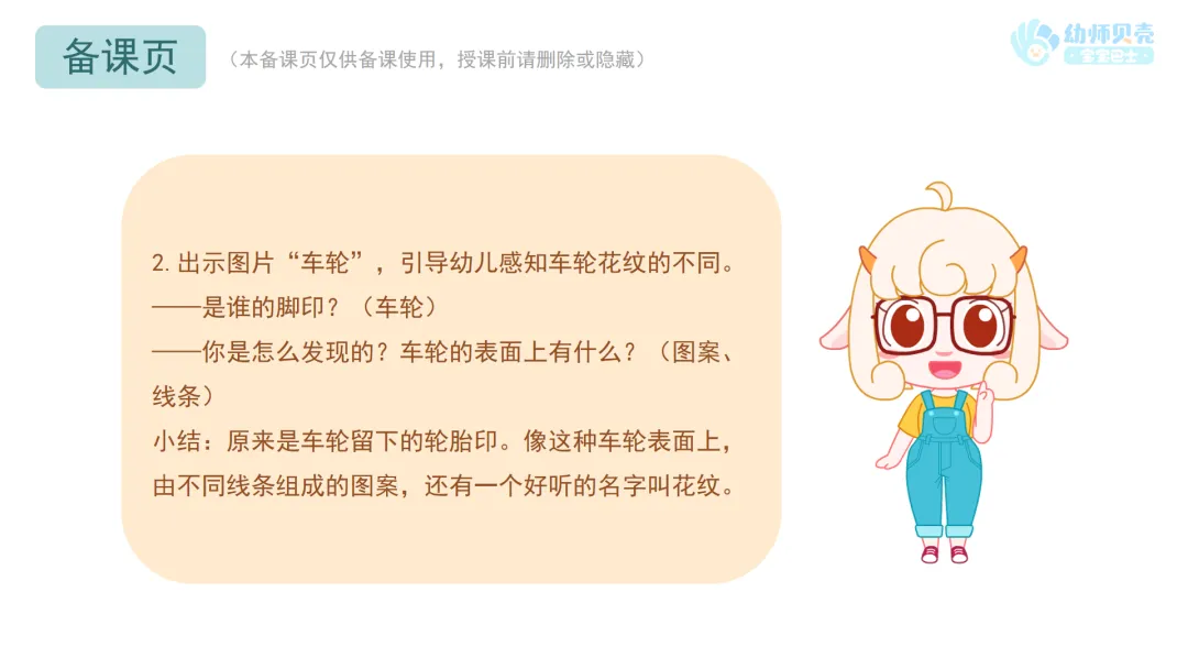 l课件准备:“奇怪的脚印”图片;“车轮”图片;《车轮滚画》手工视频。
