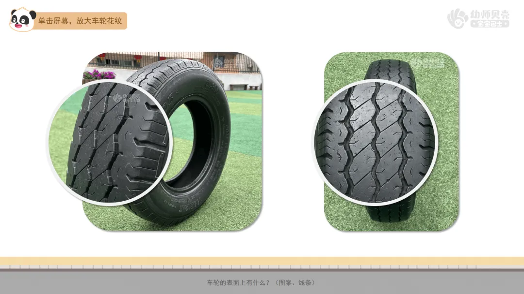 ——你是怎么发现的?车轮的表面上有什么?(图案、线条)