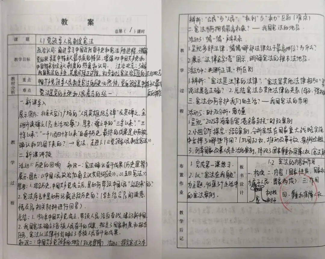 春季开学后,东风五中教联体六校联合开展了教案检查暨优秀教案展示活动。教师们紧扣新课标理念,以学生为中心,精准设定教学目标,合理规划教学流程,巧妙融入教学方法与评价设计,深入钻研,集体备课,一份份认真工整的教案,展现了老师们严谨治学、潜心教学的专业态度与育人智慧。