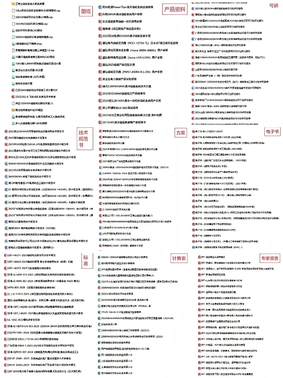 部分资料清单如下