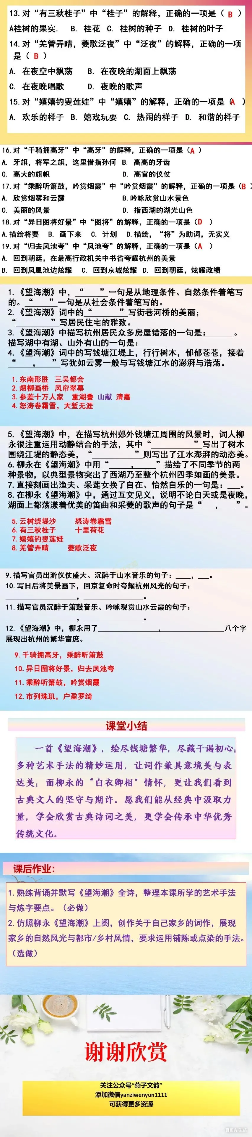 【ppt+word】《蜀相》《望海潮》课下注释重点词选择专练+名句检测