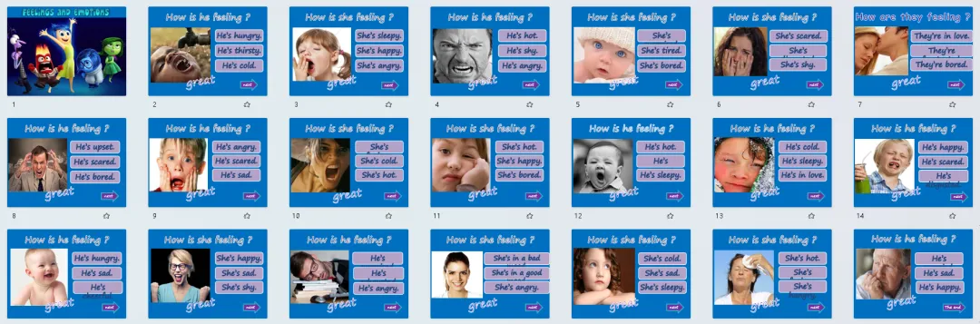 今天分享的是情绪主题英语学习素材,含3套精美课件、5套练习和7套教具!