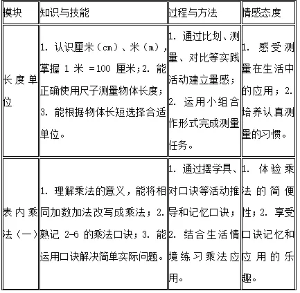 掌握长度单位(厘米、米)的概念、换算关系及应用,能准确选择单位并进行简单测量;熟记2-6 的乘法口诀,能熟练进行乘法计算和简单应用;掌握时、分、24 时计时法的认读与换算,能结合生活场景解读时间信息。