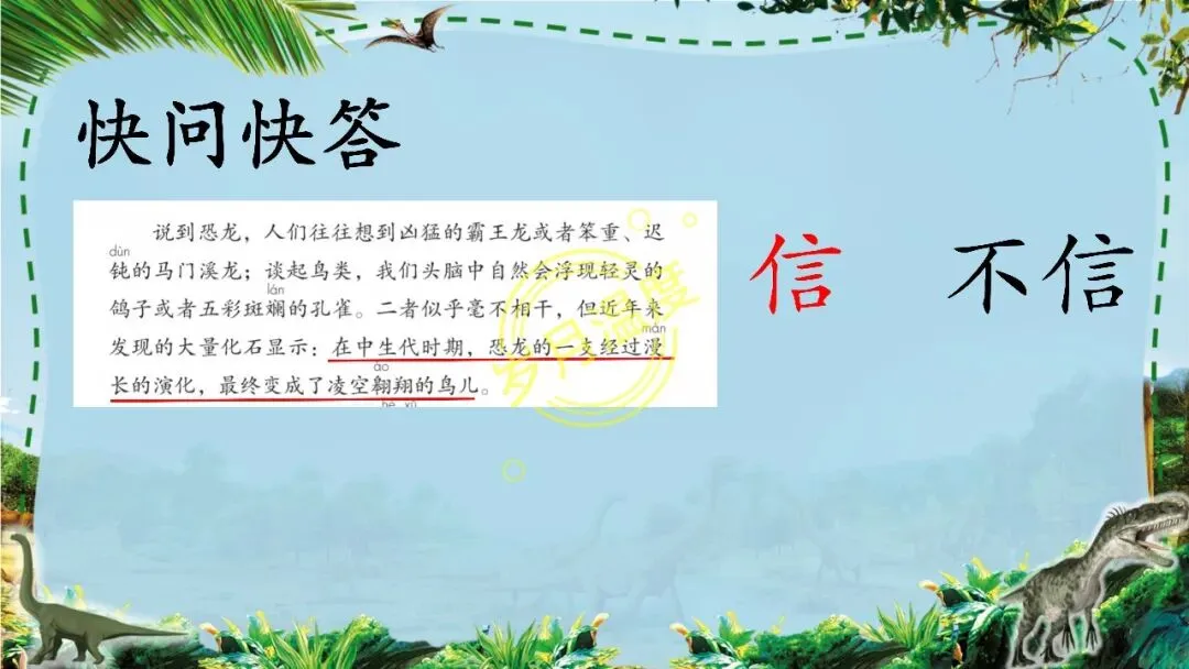 【自制课件】四下——《飞向蓝天的恐龙》教学设计同步课件