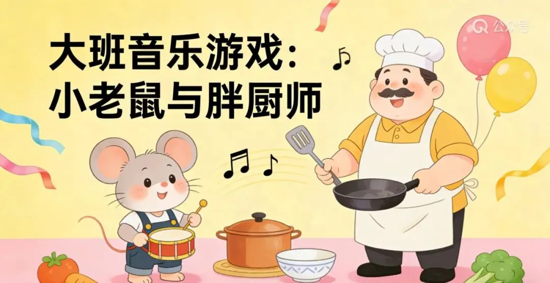 《3-6岁儿童学习与发展指南》在艺术领域指出,幼儿的艺术学习关键在于“感受与欣赏”、“表现与创造”。音乐是幼儿表达自我、认识世界的重要方式。厨房是孩子们生活中常见又充满好奇的地方,锅碗瓢盆的碰撞声、切菜的咚咚声、炒菜的滋啦声,都是天然的音乐素材。孩子们对小动物,尤其是机灵又略带“调皮”的小老鼠有着浓厚的兴趣。本活动将幼儿的生活经验(厨房声音)、喜爱的动物形象(小老鼠)与音乐律动、故事表演相结合,通过创设“小老鼠智斗胖厨师”的游戏情境,引导幼儿在听听、想想、玩玩、演演中感受音乐的节奏与旋律,创造性地表现角色特点,体验音乐游戏的快乐。