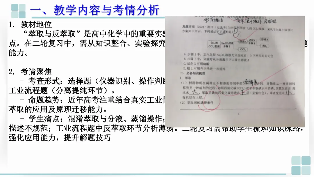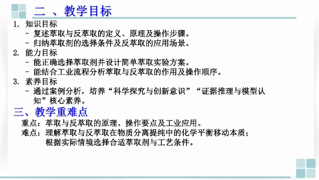 >申景艳:《萃取与反萃取的应用》说播课课件