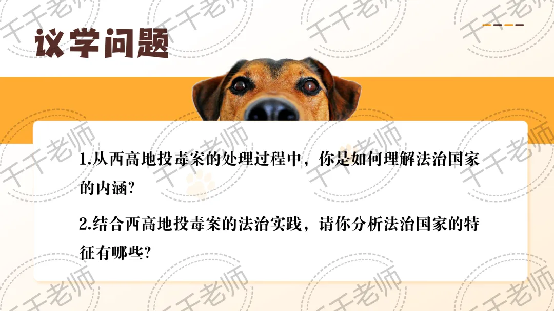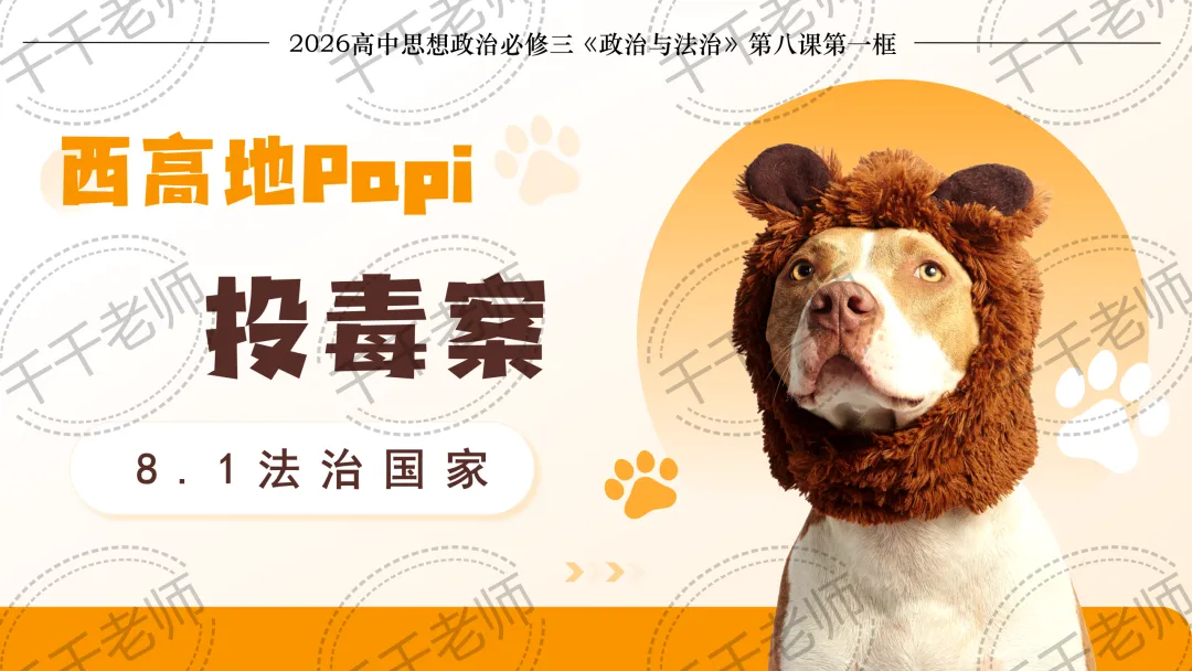 >优质课课件|2026高中政治必修三8.1法治国家课件PPT+逐字稿(辞职为爱犬追凶千余天——总议题:从西高地papi投毒案看如何建设法治国家?)