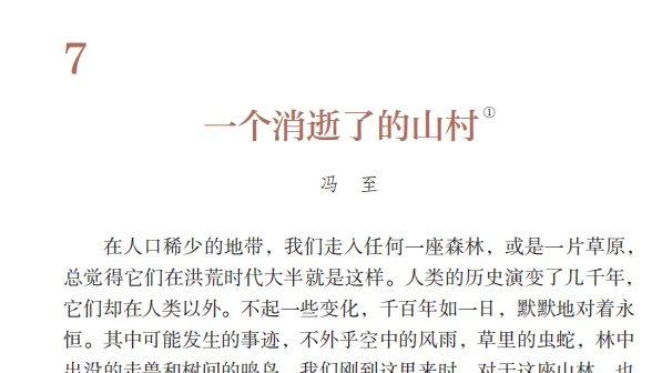 本文的题目是“一个消逝了的山村”,但作者并没有探究山村消逝的原因,而是选取了一个已经消逝了的山村的自然风物,叠加作者丰富的想象,把一个山村的过去和现在交替呈现在读者面前,给人以感悟和启示。