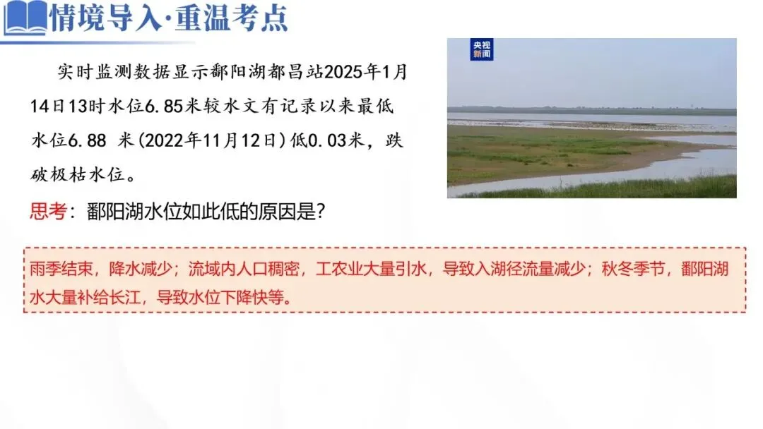 思考:鄱阳湖水位如此低的原因是?
