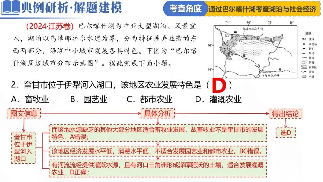 2.奎甘市位于伊犁河入湖口,该地区农业发展特色是()