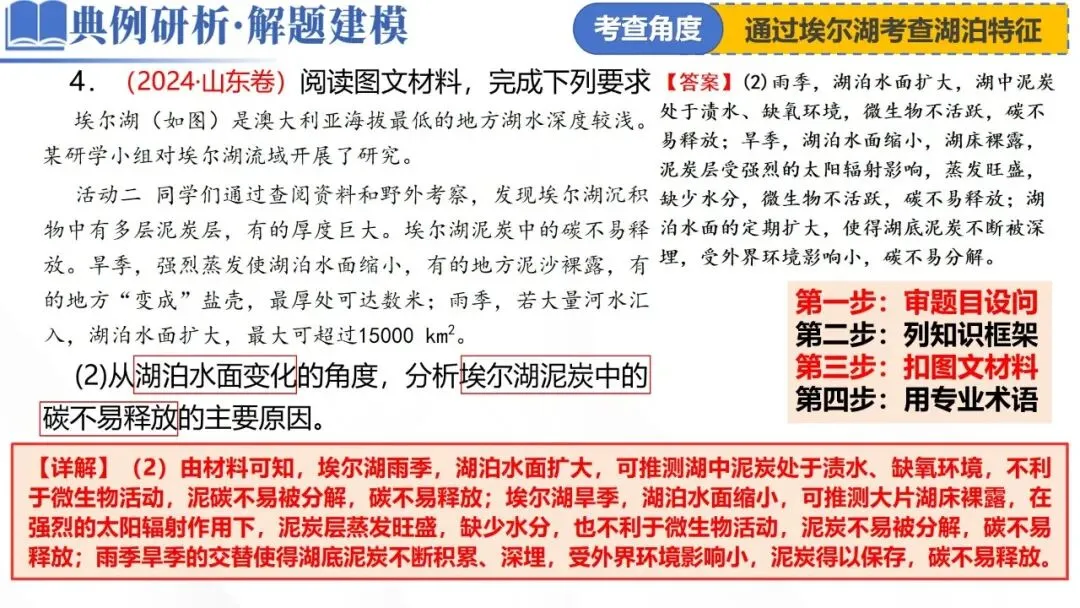 (2)从湖泊水面变化的角度,分析埃尔湖泥炭中的碳不易释放的主要原因。