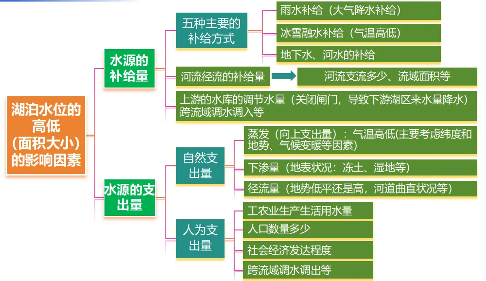 湖南,14-16题,9分 | 以中亚湖泊流量变化为情境 通过湖泊水量变化考查水量平衡 |