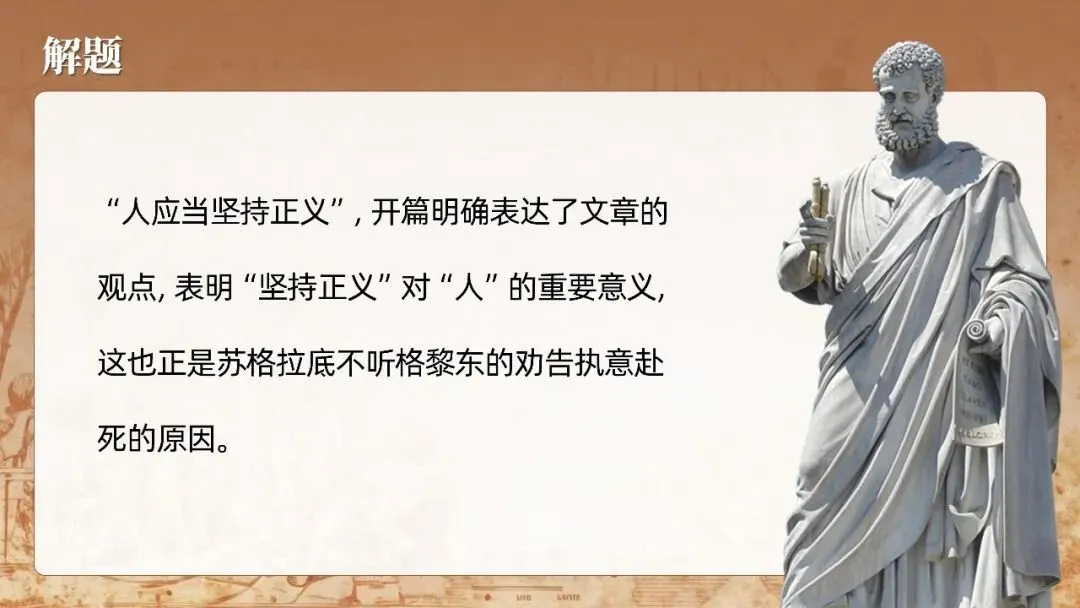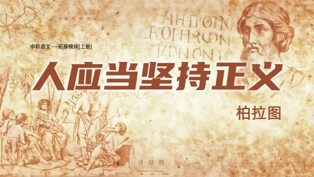 本期更新的课件为统编高教社版中职语文拓展模块上册第一单元《人应当坚持正义》,课件共21页。