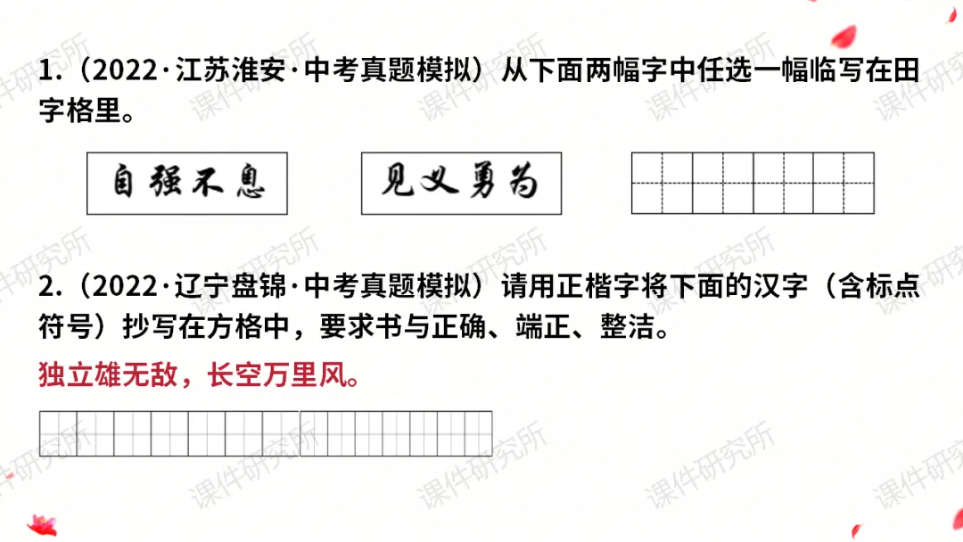 一线名师同款中考复习专题课件《书法》,到手即用,备课不用愁! | 名师系列