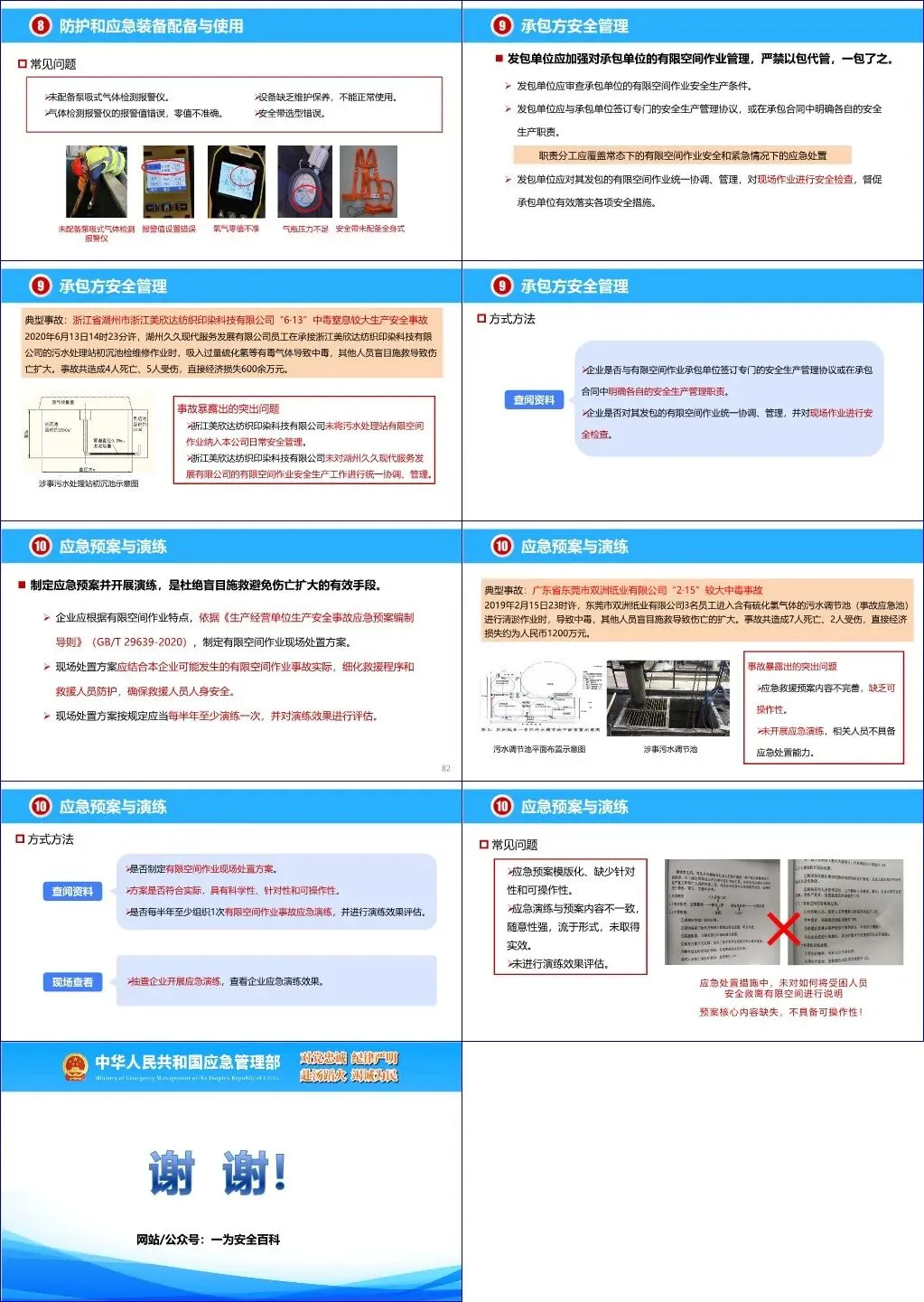 针对承包方管理,文档明确禁止“以包代管”,要求发包方对承包单位的安全生产条件进行严格审查,并统一协调管理。最后,文档强调应急预案与演练的重要性,要求企业制定具有可操作性的现场处置方案,并每半年至少组织一次演练,以杜绝因盲目施救导致的伤亡扩大。