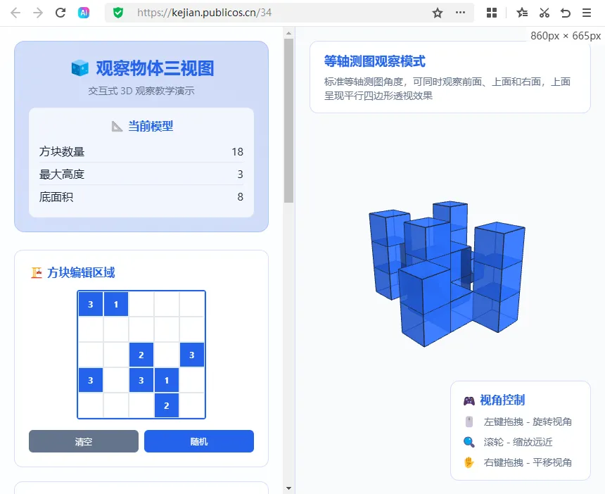 本次全新上线【观察物体三视图】,支持多种参数控制,所见即所得,课件访问地址:https://kejian.publicos.cn/34(复制到浏览器打开)