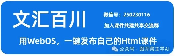 针对 AI 课件制作、发布、共享的三大核心痛点,我们依托文汇百川 WebOS 搭建了中小学课件共建共享平台,打造一站式网页课件管理解决方案,汇聚全国中小学优质课件资源,让备课更轻松!同时平台不仅限于课件,还可以完全满足老师和学生们的各类稀奇古怪的想法