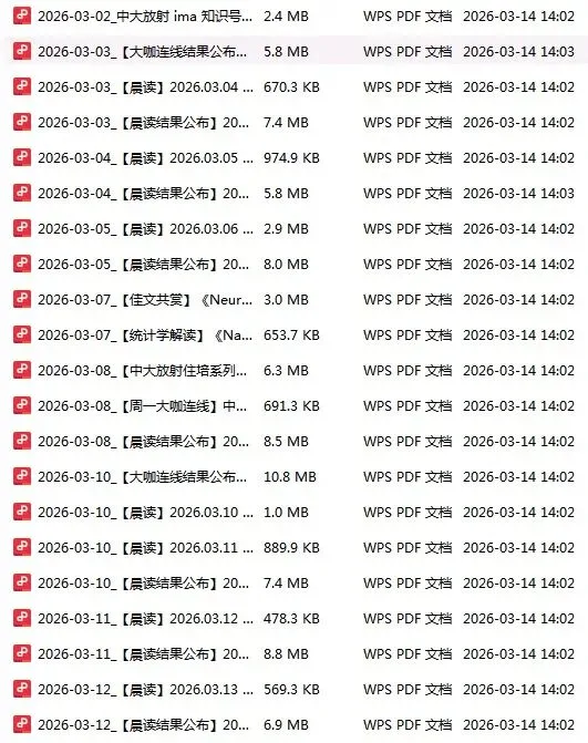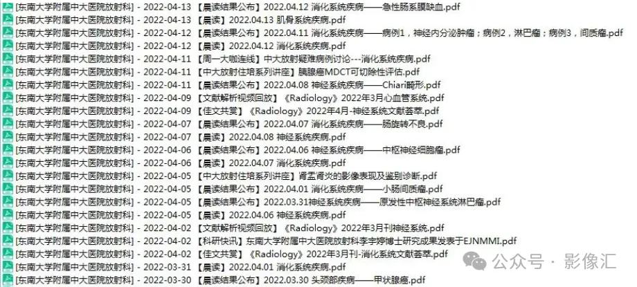 本次搜集内容为“东南大学附属中大医院放射科”开号至今(2026.3.14)所有文章,中大放射科的课件质量大家都有目共睹,下载下来学习更方便,如有需求请关注本公众号后加小编好友PJ11891免费获取(送配套中大讲座视频)。多次免费领取了资料的伙伴,请自觉帮忙转发一下。