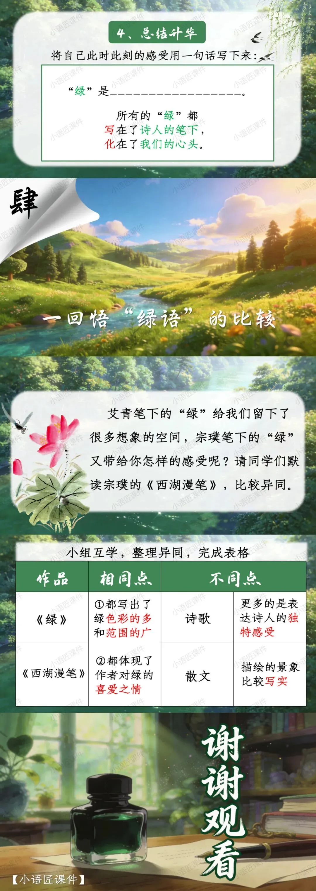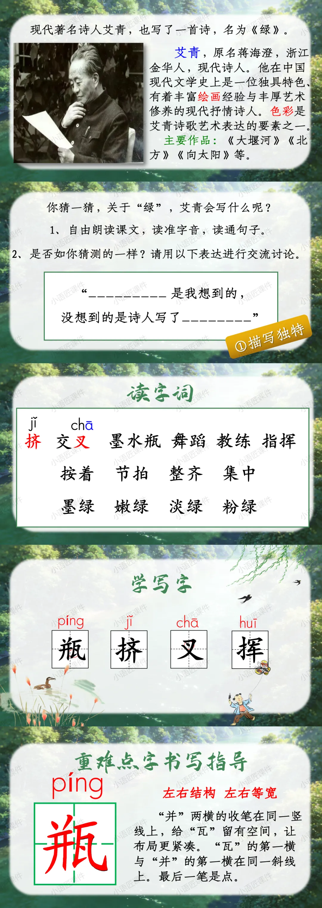 大家好,我是小语匠课件!今天给大家分享四年级下册《绿》的独家课件。