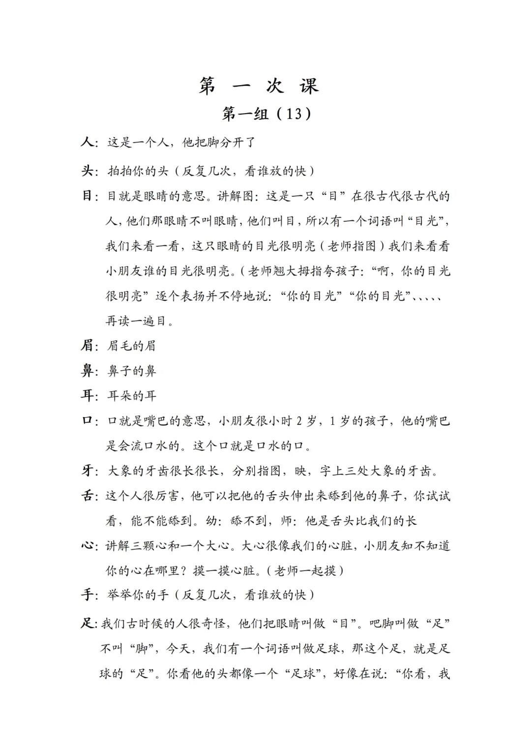 这套直映象形识字启蒙课也太适合幼小衔接啦,课件用超形象的图画对应汉字,比如“人”就配迈开腿的小人、“目”就配大眼睛的图,把古老的象形字变成孩子一眼能看懂的小画面,好记又好玩;配套教案里还有拍手、摸心脏这些互动小口令,带着孩子边动边认,把“人、目、口、耳”这些基础字学得扎扎实实,轻松开启识字第一步~