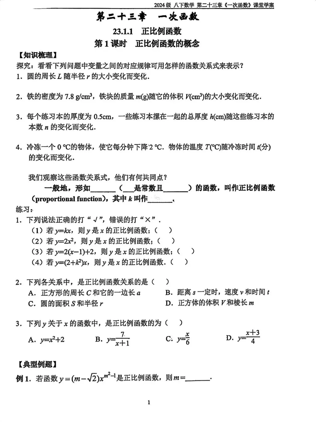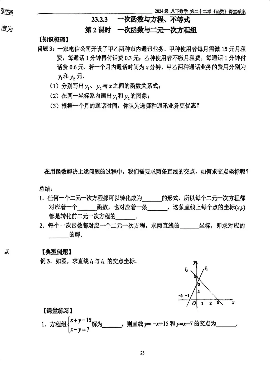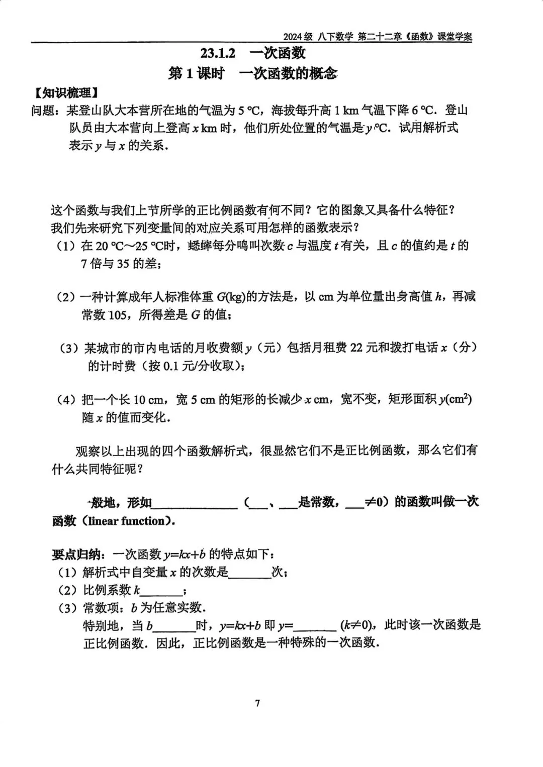 >北京二中初二(下)一次函数教案