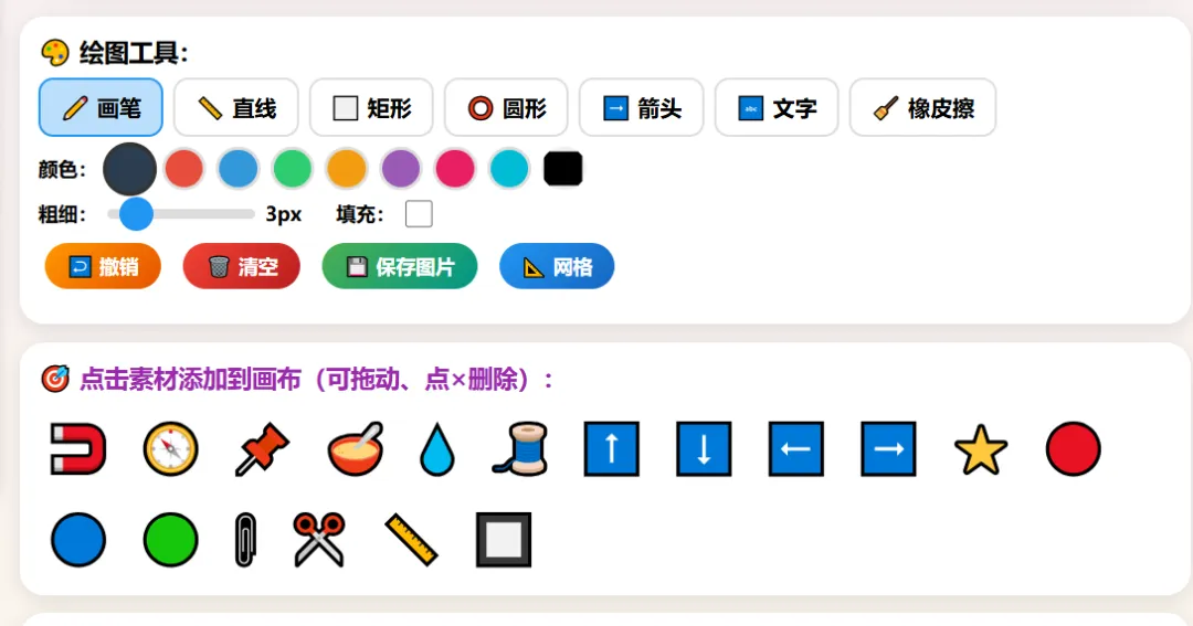 首先你直接把教材教参各种图片发给ai,然后你就跟他说:我希望你理解这个整节课的逻辑需要和孩子们怎么样讲重点是哪些知识,把它讲成一个有逻辑可以交互的,比如需要画画的地方就可以画画,需要评价的地方就可以评价,评价的时候给孩子们一些可爱的积极的反馈,所有的重点知识都用大字体清晰地标注出来,自己思考其他功能,做出一个html,场景是教师上课用。