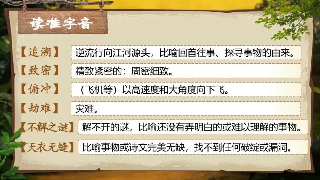 语言运用:积累“褶皱、追溯、天衣无缝”等字词;品读课文,体会事理说明文语言科学准确、逻辑严密又通俗风趣的特点。