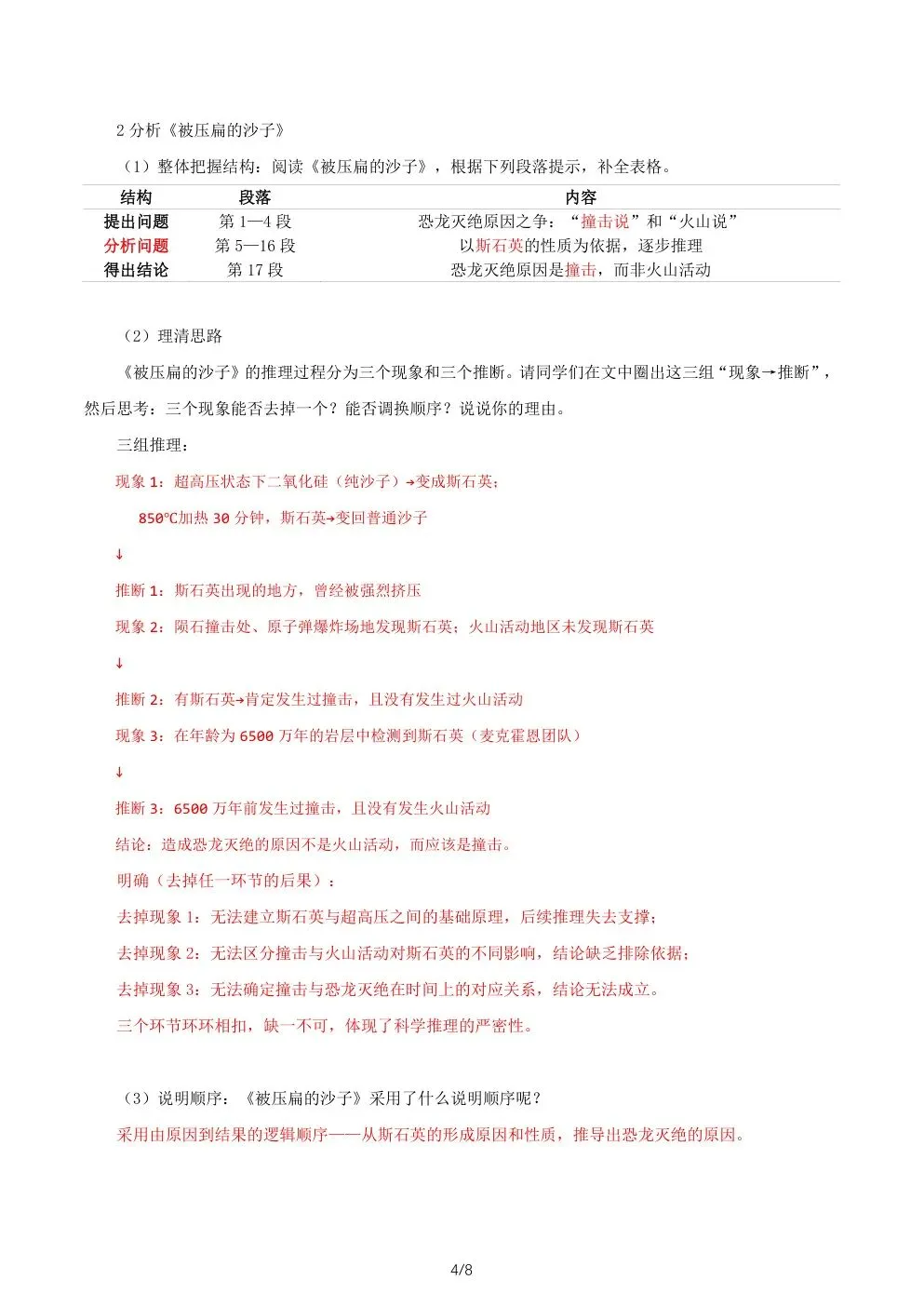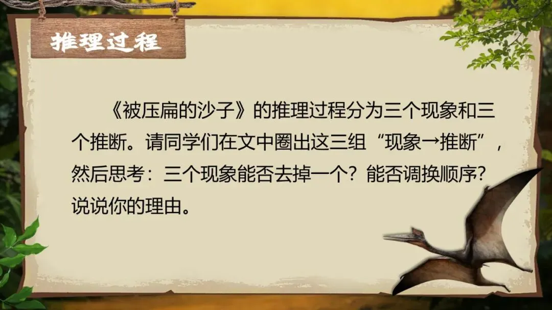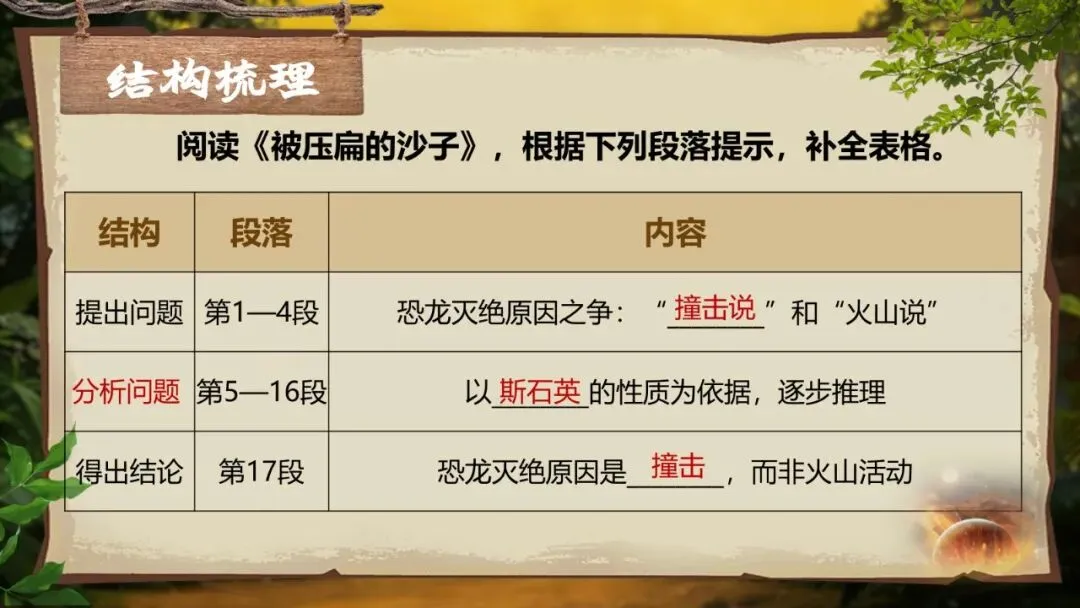 《被压扁的沙子》表面上说明“被压扁的沙子”这个物体,其实作者是想借此证明/探讨“造成恐龙灭绝的原因是撞击运动”。